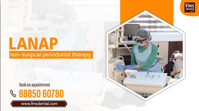 LANAP offers advantages of better control of bleeding, less surgical access, minimal post-operative pain, lesser recession of gums and reduced teeth hypersensitivity. At FMS Dental, Koti best dentist (Periodontist) with experience over a decade treat you for your gum diseases.