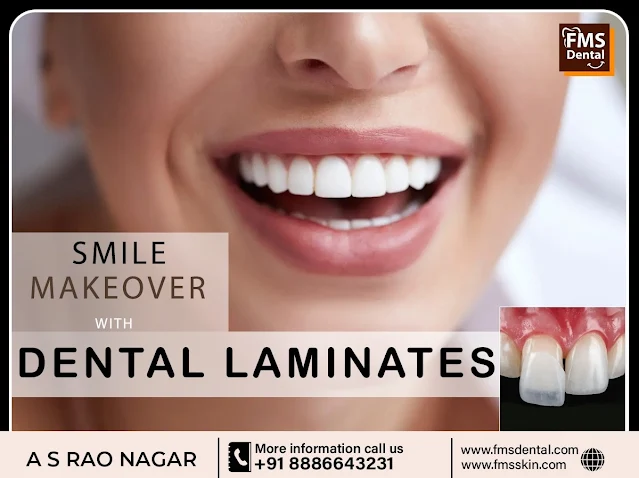 FMS Dental Hospital has been one of the best dental clinic in A S Rao Nagar for dental laminates treatment. At FMS Dental, senior team of cosmetic dentists plan your treatment utilizing world-class advancements in cosmetic dentistry that can transform your smile more quickly than you have ever imagined. Dental laminates can be used to correct one tooth or many times multiple teeth too.
