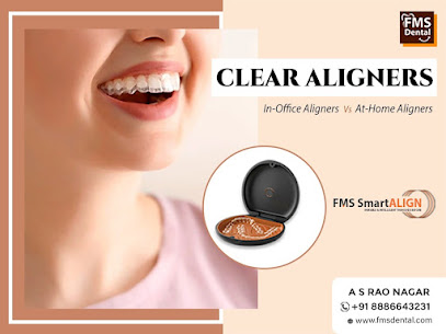 FMS Dental Hospital is one of the best dental clinic in Hyderabad A S Rao Nagar, for clear aligners treatment. Two types of clear aligner options are available in the market, In-office aligners and At-home aligners. In-office aligners like Invisalign, SureSmile, FMS SmartALIGN etc. are well-known options in India. These in-office aligners are always the best bet because all critical steps from the planning to follow up are done in the respective clinics by the braces dentist in-house orthodontist.
