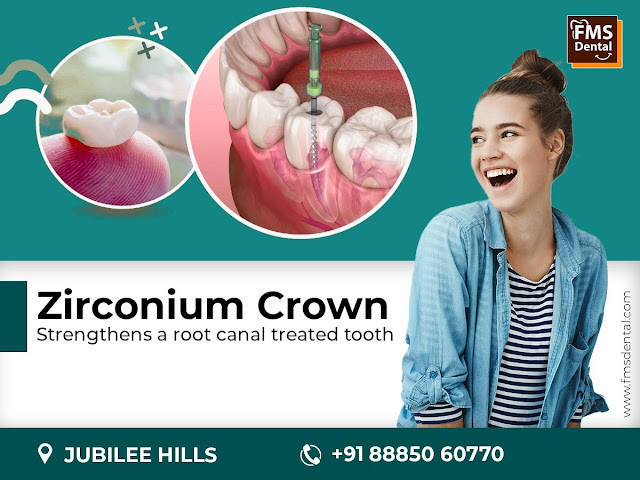 FMS International Dental Center is one of the best dental clinic in Jubilee Hills, Hyderabad for root canal treatment and zirconium crown. Root canal treatment involves removal of the infected or damaged pulp from the tooth. Placing a crown over the root canal treated tooth helps to restore its strength and durability, making it less prone to fracture or further damage.